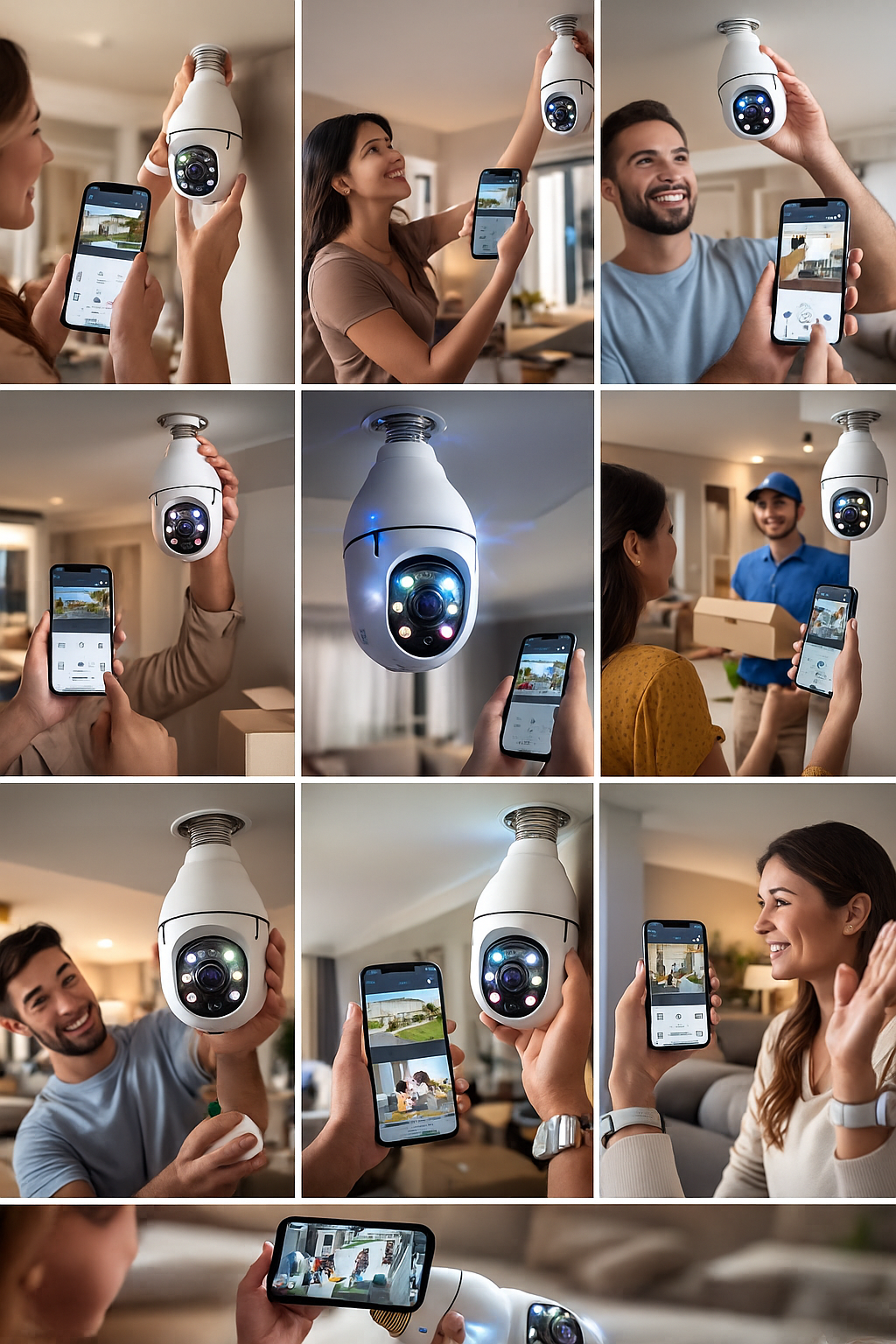 Olvídate de gastar en instaladores. Solo enrosca la cámara como un foco y comienza a usarla al instante. No requiere herramientas, cables ni experiencia técnica. Es la solución más rápida y sencilla para aumentar tu seguridad sin complicaciones. Aprobado por usuarios que nunca antes habían instalado una cámara.