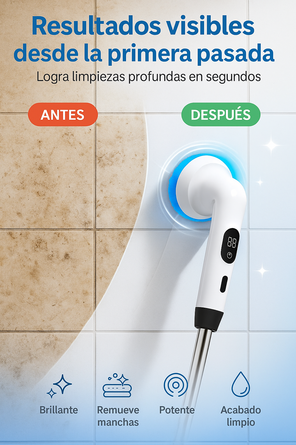 El cabezal 360° remueve suciedad profunda en segundos. La diferencia se nota en las primeras pasadas. Ideal para baños, cocina y pisos de cerámica donde la suciedad se acumula más.