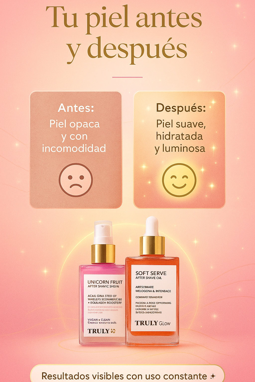 La combinación de ácido hialurónico y aceites naturales permite reponer humedad en profundidad, logrando una piel más suave y nutrida. Es perfecto para zonas que tienden a resecarse por depilación o fricción. Fórmulas así son recomendadas por expertos para mantener la barrera de la piel saludable. TrulyGlow actúa desde la primera aplicación.