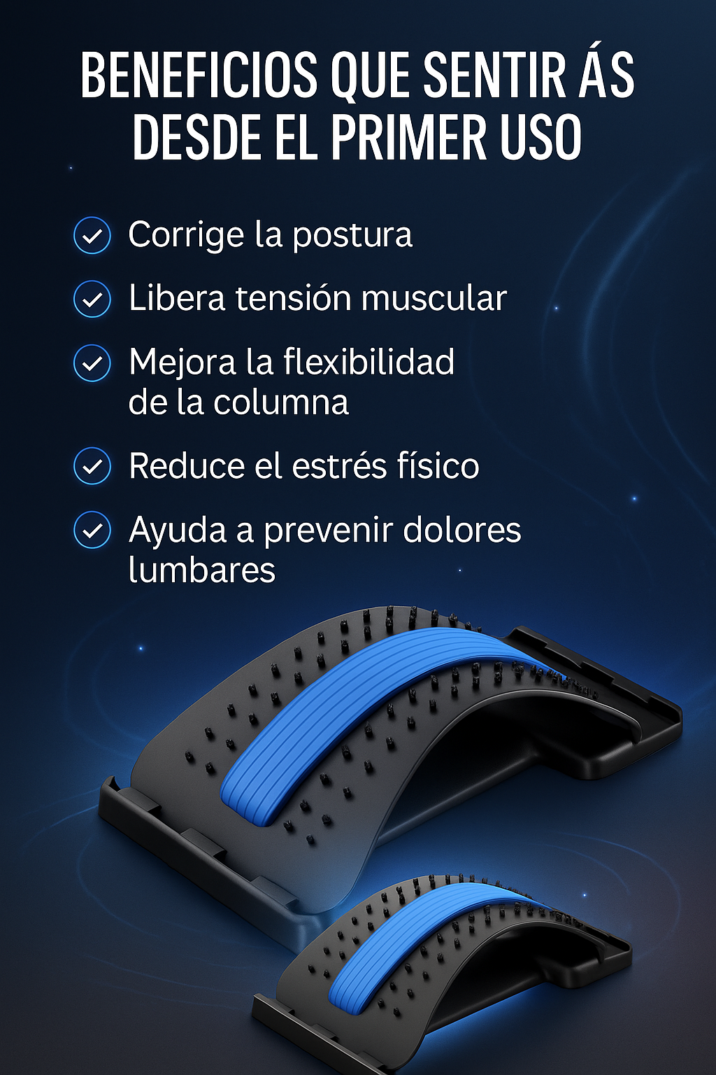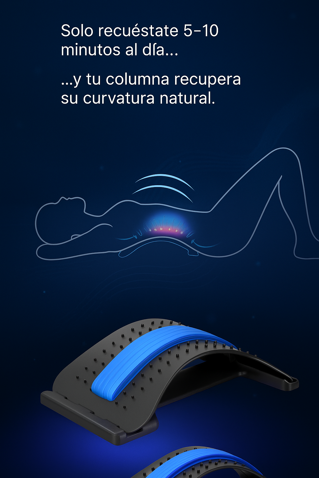 Reduce la presión entre vértebras, relaja músculos tensos y mejora postura de forma natural.