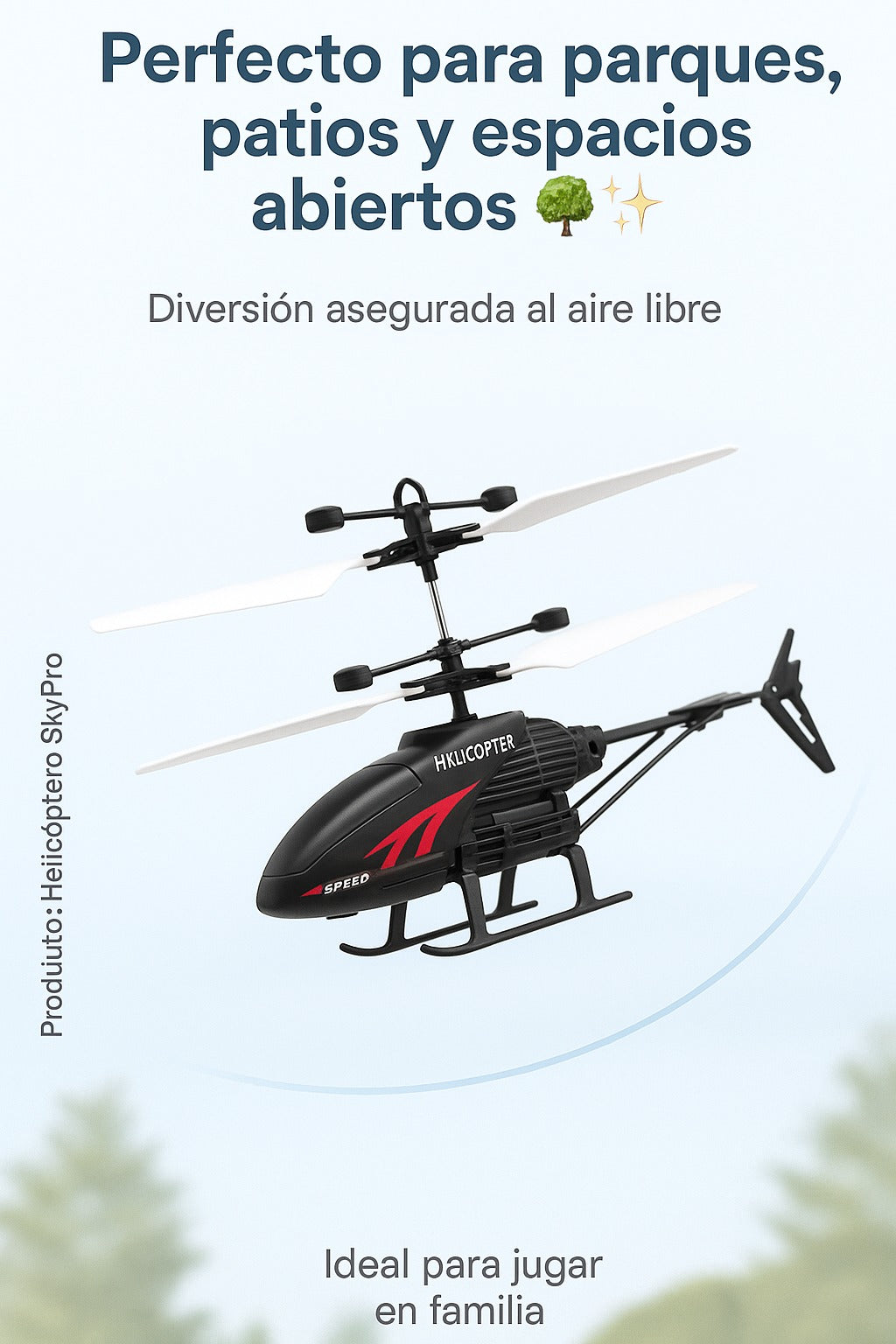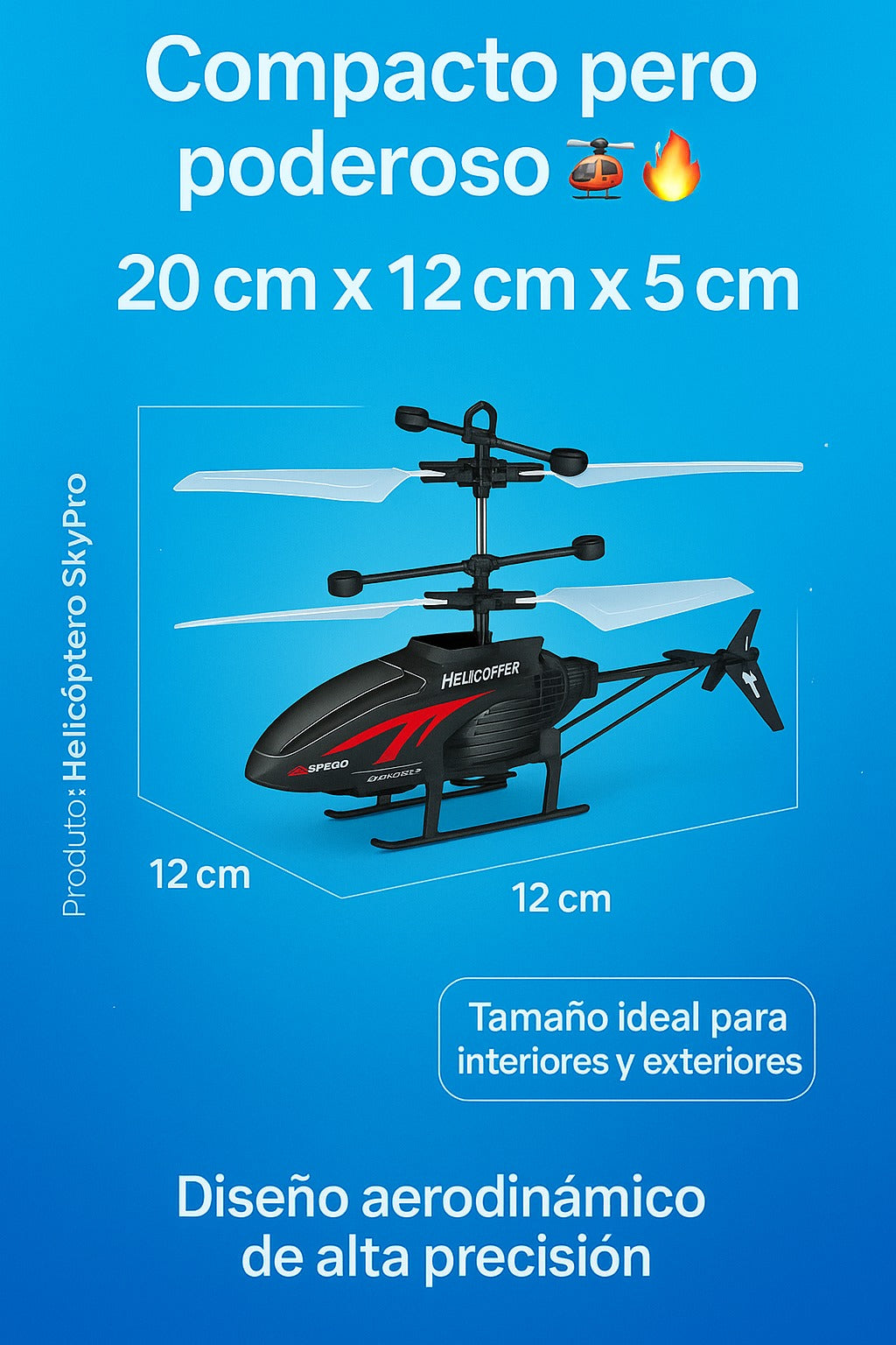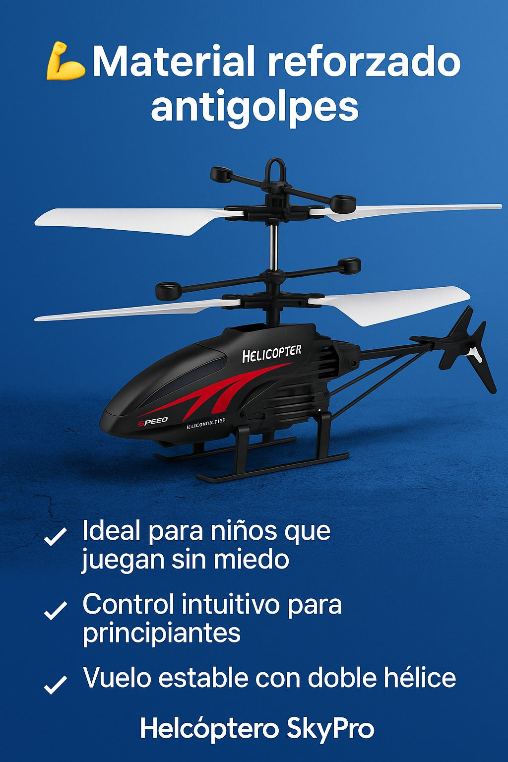 El Helicóptero SkyPro utiliza un sistema de doble hélice que genera estabilidad automática, permitiendo que cualquier persona —incluso niños— pueda controlarlo con facilidad.