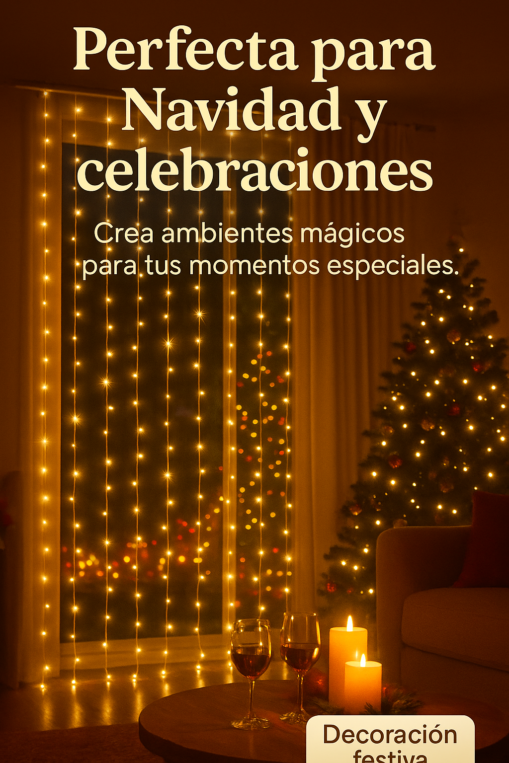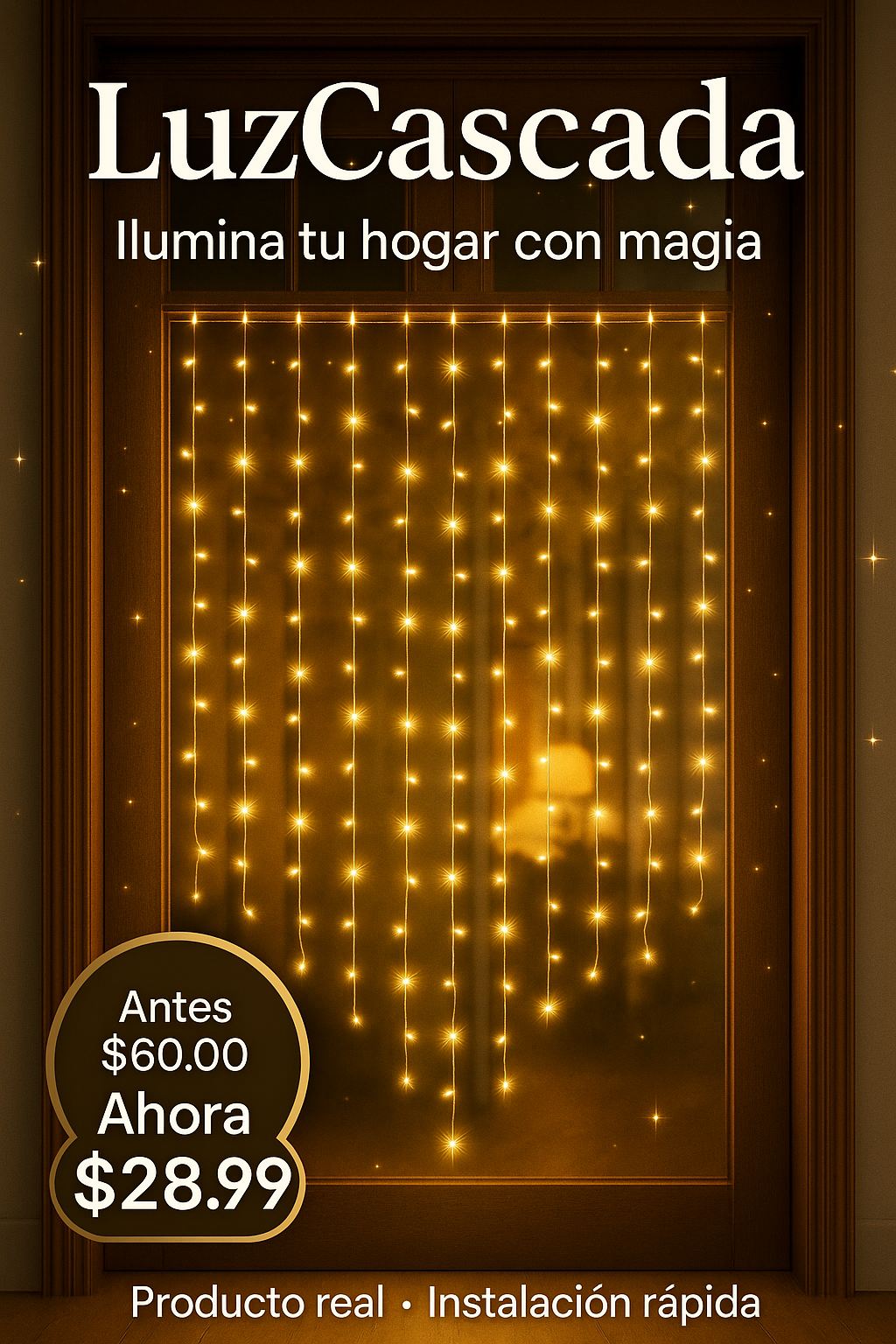 LuzCascada es una cortina LED tipo cascada que ilumina con luz cálida uniforme, creando ambientes visualmente hermosos. Sus LEDs potentes, más su diseño elegante, transforman cualquier espacio en minutos.
