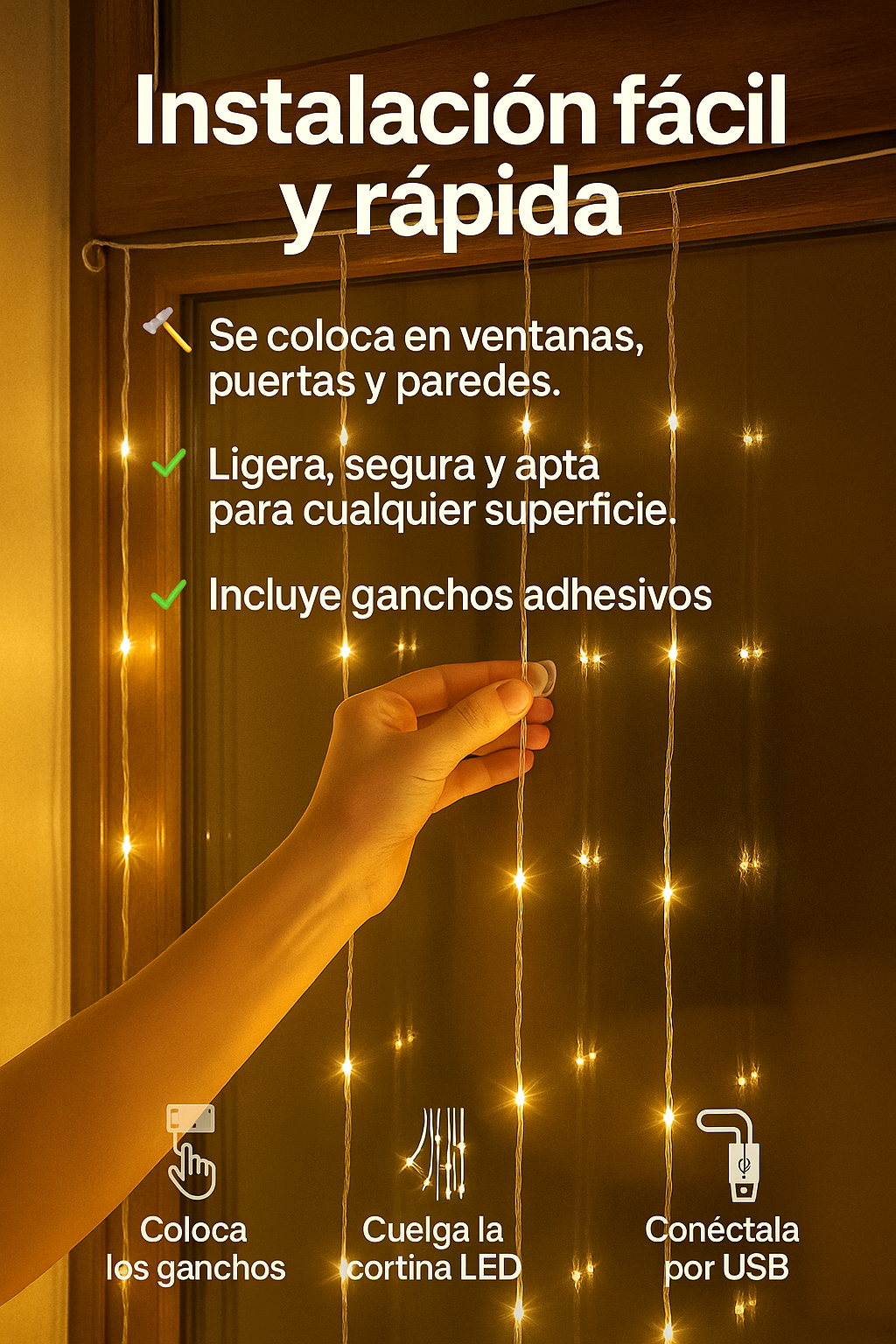 No requiere herramientas, electricistas ni perforaciones. LuzCascada fue diseñada bajo el principio de “instalar y disfrutar”, uno de los más valorados en decoración moderna.