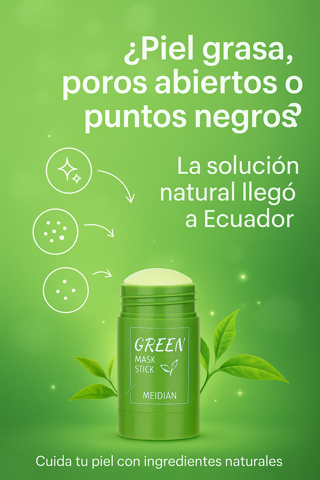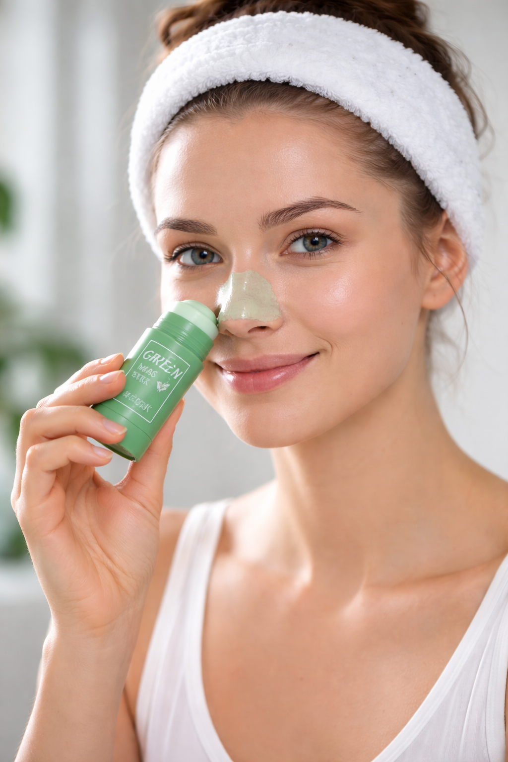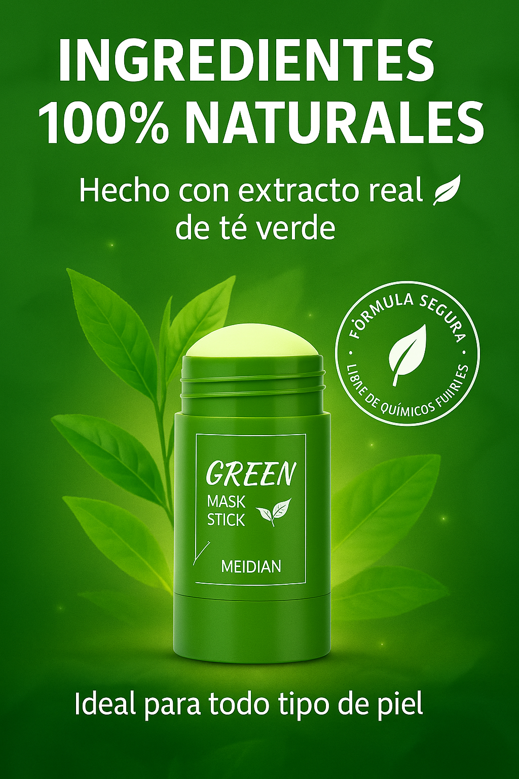 La mascarilla en stick penetra suavemente en los poros, absorbe la grasa acumulada, elimina impurezas y reduce puntos negros. Su fórmula de té verde actúa como purificante natural dejando la piel fresca y uniforme.
