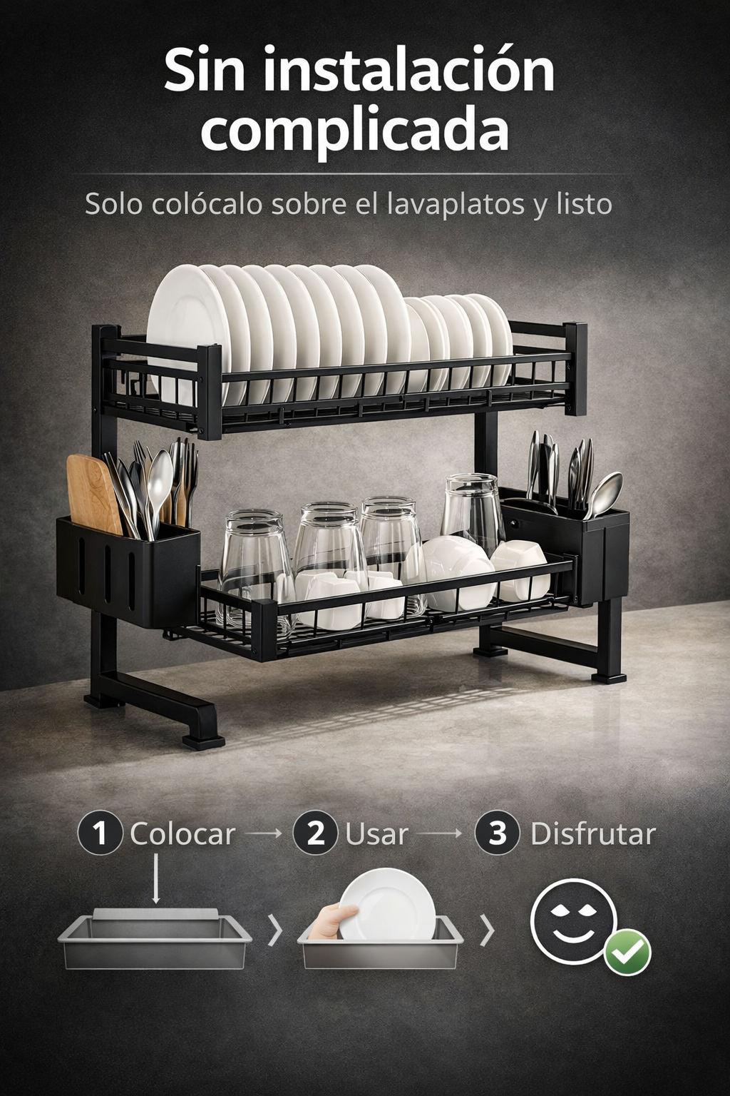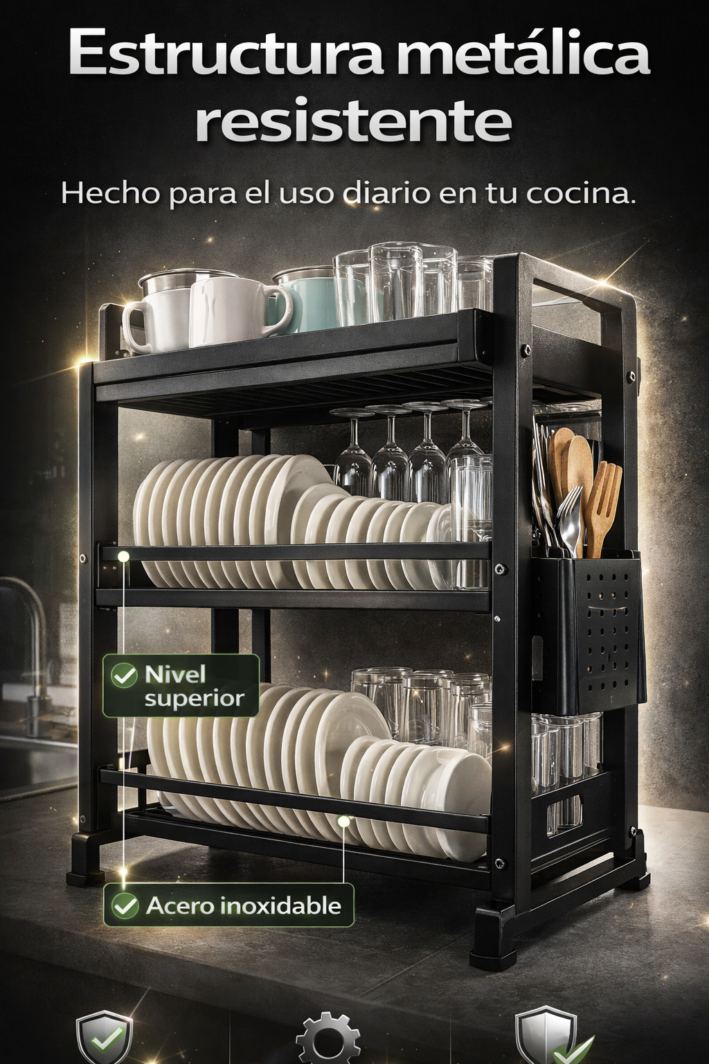 A diferencia de escurridores frágiles, el Platero Metálico Pro mantiene su forma incluso con platos, ollas y utensilios pesados.