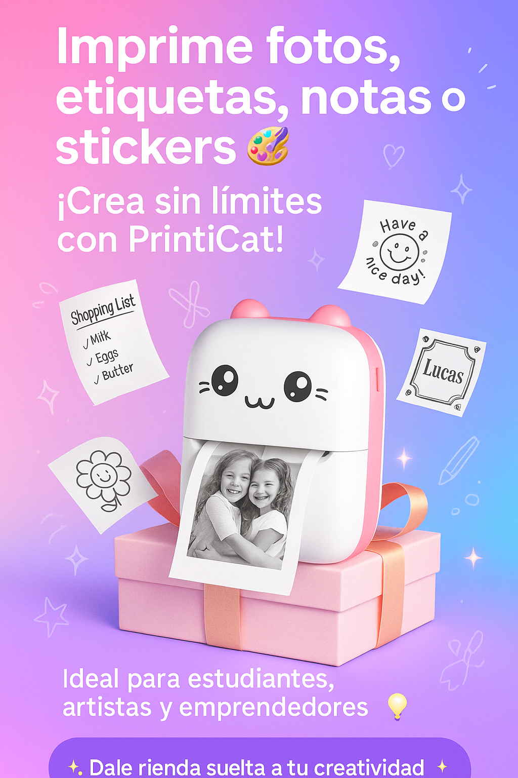Imprime sin tinta ni cartuchos. ¡Solo papel térmico y listo!