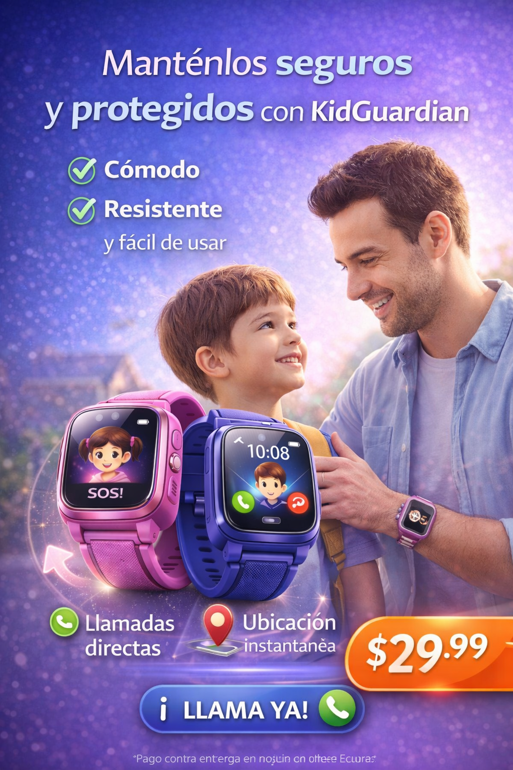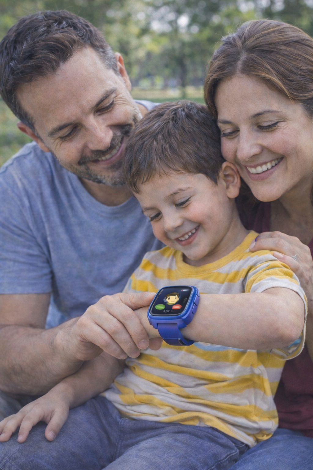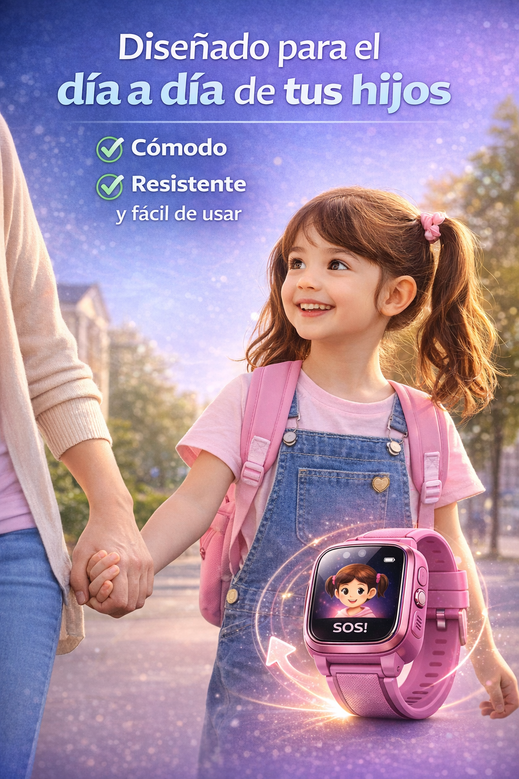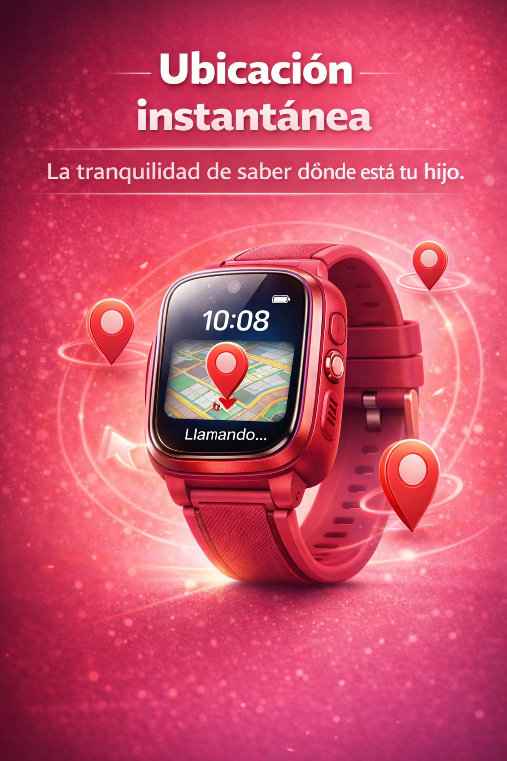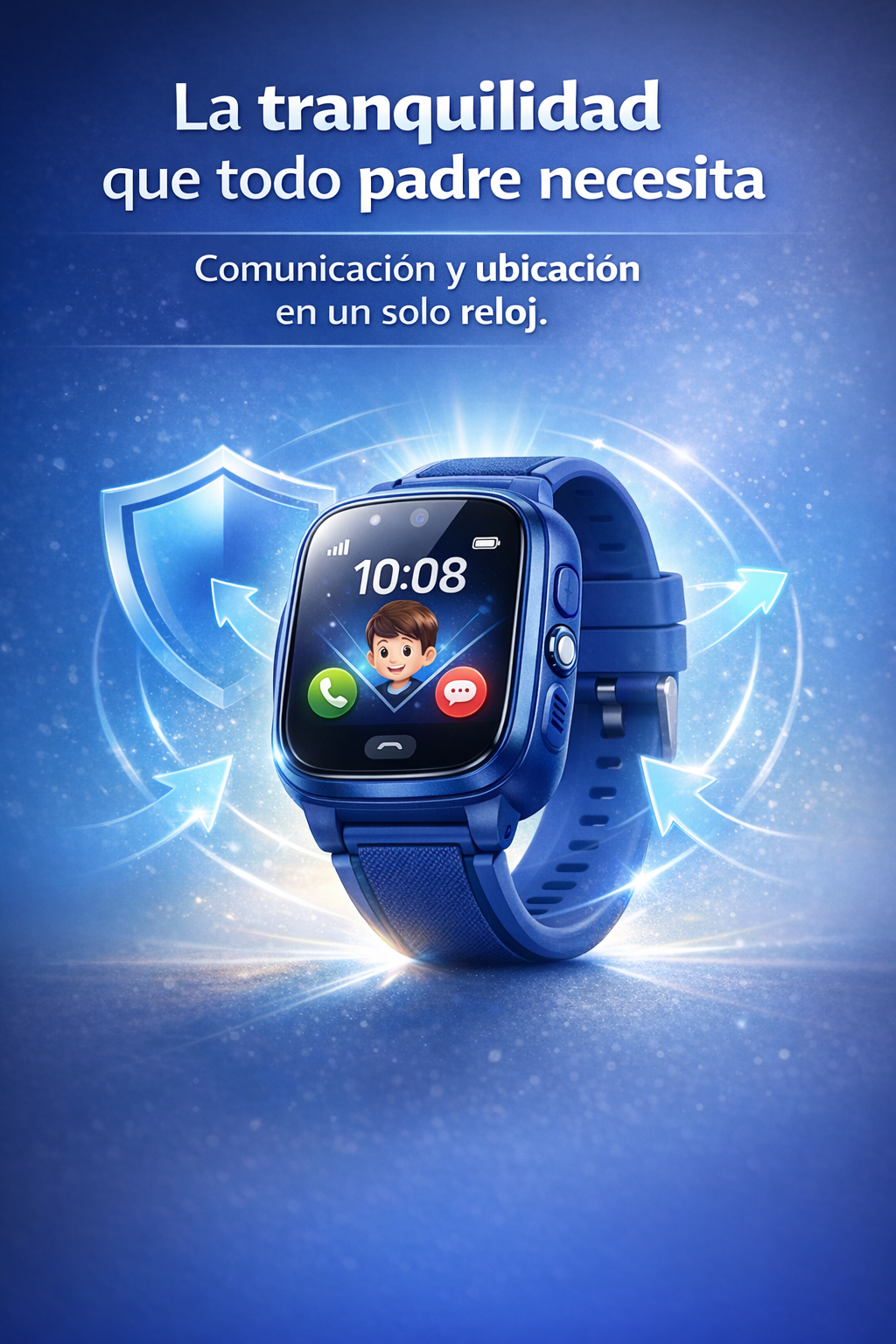 Este reloj reemplaza al celular tradicional, evitando distracciones, pérdidas y riesgos innecesarios. El niño puede comunicarse únicamente con los contactos autorizados, mientras los padres mantienen el control total desde su teléfono.